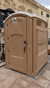 Spacious, ADA-compliant portable restrooms suitable for events, public spaces, and job sites. Designed to provide safe and comfortable access for all guests.